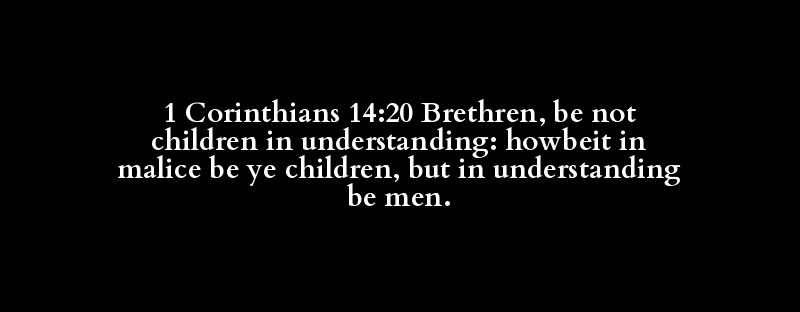 1 Corinthians 14:20 Brethren, be not children in understanding: howbeit in malice be ye children, but in understanding be men.