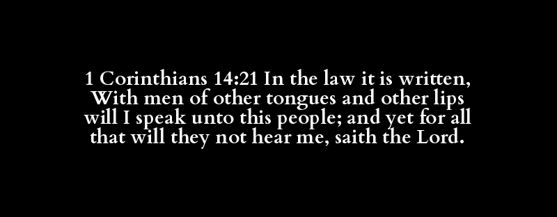 1 Corinthians 14:21 In the law it is written, With men of other tongues and other lips will I speak unto this people; and yet for all that will they not hear me, saith the Lord.