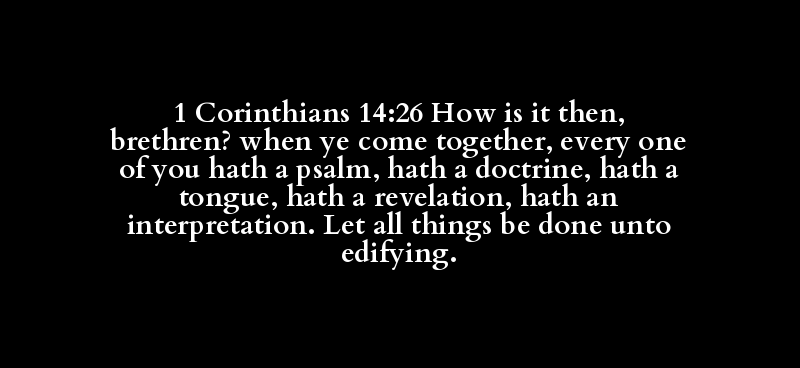 | [tis] | [esti] | [oun] | [adephos] | [hotan] | [sunerchomai] | [hekastos] | [humon] | [echo] | [psalmos] | [echo] | [didache] | [echo] | [glossa] | [echo] | [apokalupsis] | [echo] | [hermeneia] | [ginomai] | [pas] | [ginomai] | [pros] | [oikodome] |