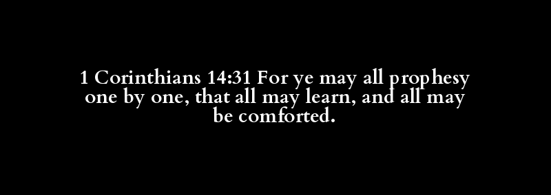 1 Corinthians 14:31 For ye may all prophesy one by one, that all may learn, and all may be comforted.