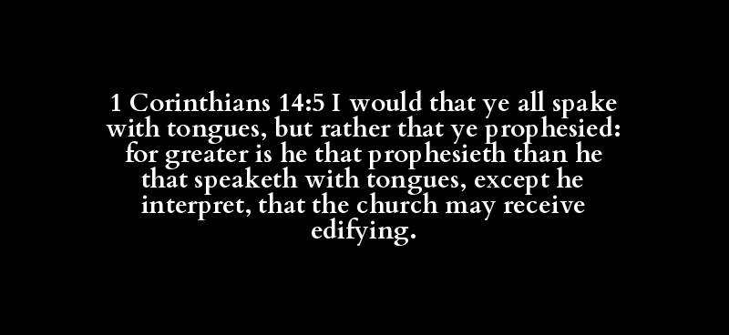 | [de] | [thelo] | [humas] | [pas] | [laleo] | [glossa] | [de] | [mallon] | [hina] | [propheteuo] | [gar] | [meizon] | [propheteuo] | [e] | [laleo] | [glossa] | [ei] | [ektos] | [diermeneuo] | [hina] | [ekklesia] | [lambano] | [oikodome] |