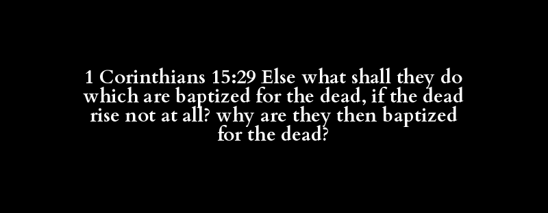 1 Corinthians 15:29 Else what shall they do which are baptized for the dead, if the dead rise not at all? why are they then baptized for the dead?