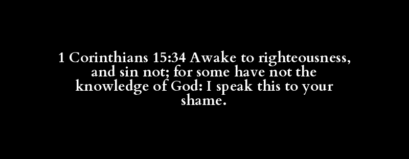 1 Corinthians 15:34 Awake to righteousness, and sin not; for some have not the knowledge of God: I speak this to your shame.