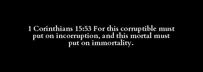 1 Corinthians 15:53 For this corruptible must put on incorruption, and this mortal must put on immortality.