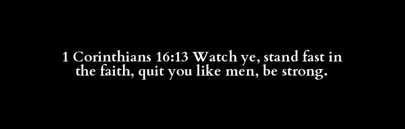 1 Corinthians 16:13 Watch ye, stand fast in the faith, quit you like men, be strong.