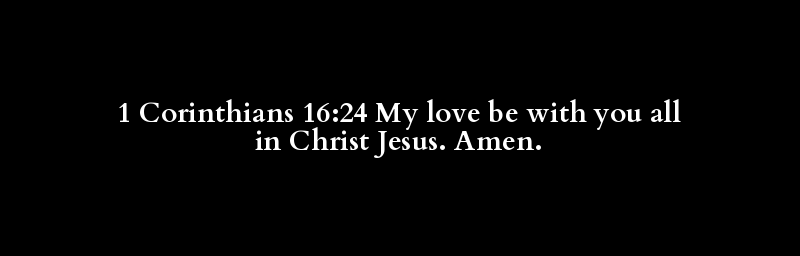 1 Corinthians 16:24 My love be with you all in Christ Jesus. Amen.