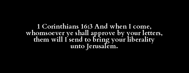 1 Corinthians 16:3 And when I come, whomsoever ye shall approve by your letters, them will I send to bring your liberality unto Jerusalem.