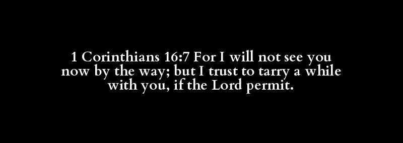 1 Corinthians 16:7 For I will not see you now by the way; but I trust to tarry a while with you, if the Lord permit.