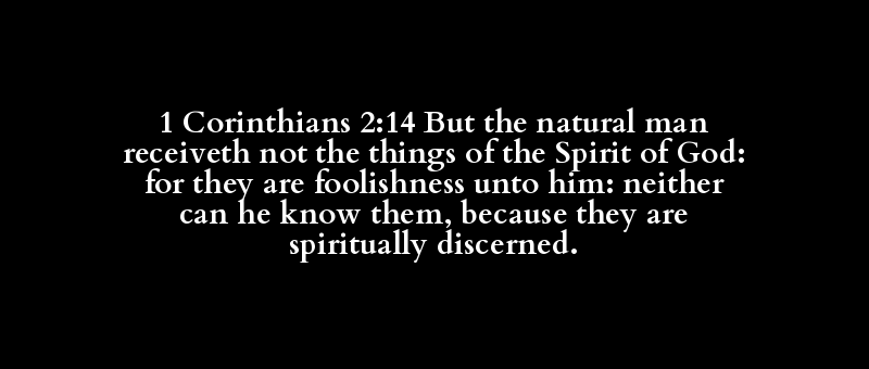 1 Corinthians 2:14 But the natural man receiveth not the things of the Spirit of God: for they are foolishness unto him: neither can he know them, because they are spiritually discerned.