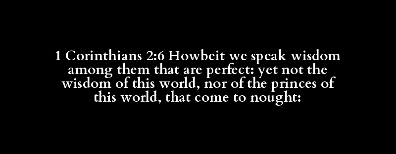 1 Corinthians 2:6 Howbeit we speak wisdom among them that are perfect: yet not the wisdom of this world, nor of the princes of this world, that come to nought: