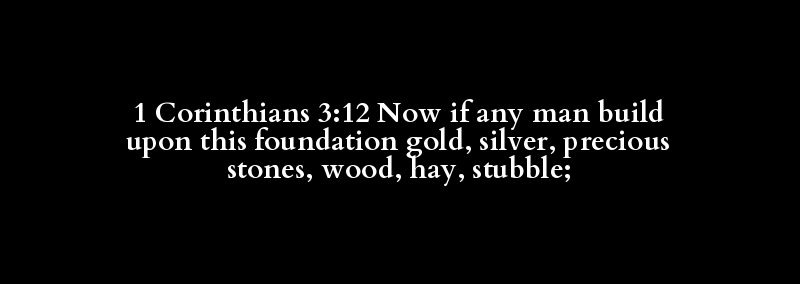 1 Corinthians 3:12 Now if any man build upon this foundation gold, silver, precious stones, wood, hay, stubble;