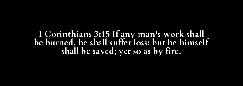 1 Corinthians 3:15 If any man's work shall be burned, he shall suffer loss: but he himself shall be saved; yet so as by fire.