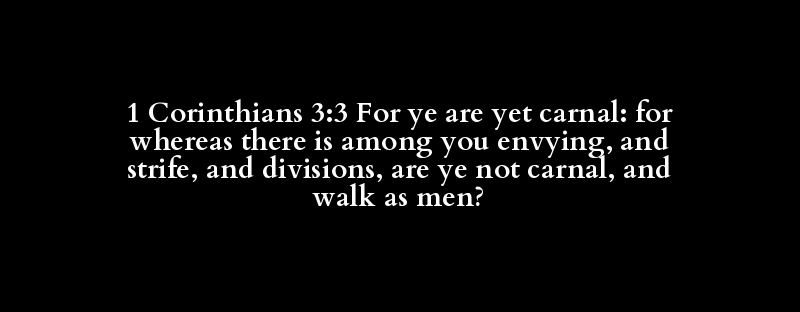 1 Corinthians 3:3 For ye are yet carnal: for whereas there is among you envying, and strife, and divisions, are ye not carnal, and walk as men?