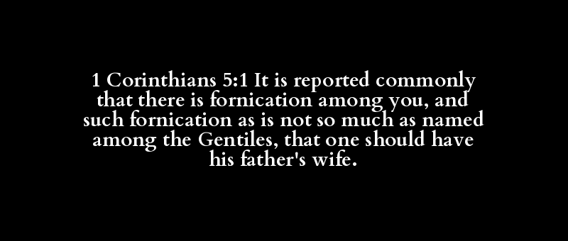 1 Corinthians 5:1 It is reported commonly that there is fornication among you, and such fornication as is not so much as named among the Gentiles, that one should have his father's wife.