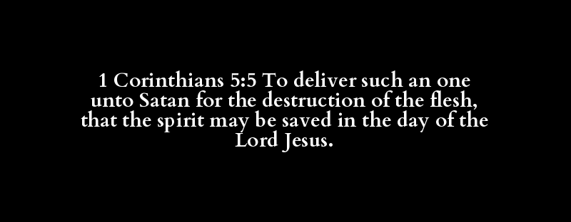1 Corinthians 5:5 To deliver such an one unto Satan for the destruction of the flesh, that the spirit may be saved in the day of the Lord Jesus.