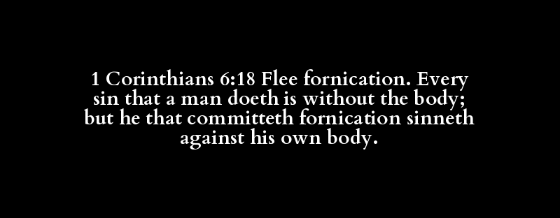 1 Corinthians 6:18 Flee fornication. Every sin that a man doeth is without the body; but he that committeth fornication sinneth against his own body.