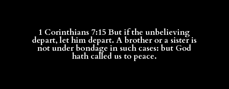 1 Corinthians 7:15 But if the unbelieving depart, let him depart. A brother or a sister is not under bondage in such cases: but God hath called us to peace.