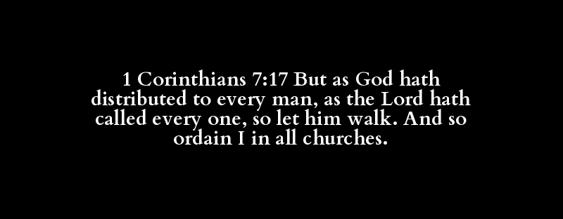 1 Corinthians 7:17 But as God hath distributed to every man, as the Lord hath called every one, so let him walk. And so ordain I in all churches.