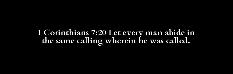 1 Corinthians 7:20 Let every man abide in the same calling wherein he was called.
