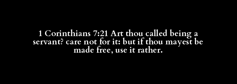 1 Corinthians 7:21 Art thou called being a servant? care not for it: but if thou mayest be made free, use it rather.