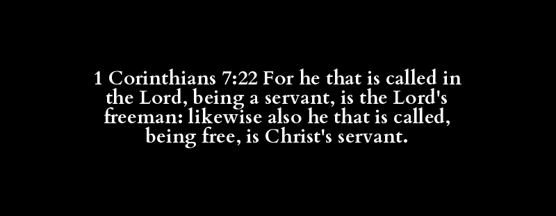 1 Corinthians 7:22 For he that is called in the Lord, being a servant, is the Lord's freeman: likewise also he that is called, being free, is Christ's servant.