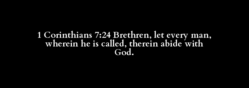 1 Corinthians 7:24 Brethren, let every man, wherein he is called, therein abide with God.