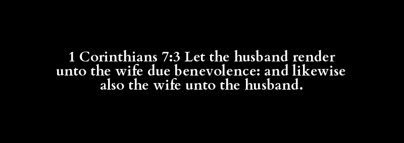 1 Corinthians 7:3 Let the husband render unto the wife due benevolence: and likewise also the wife unto the husband.