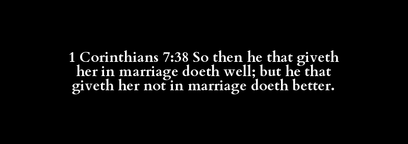 1 Corinthians 7:38 So then he that giveth her in marriage doeth well; but he that giveth her not in marriage doeth better.