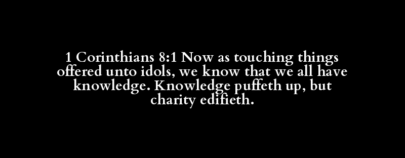 1 Corinthians 8:1 Now as touching things offered unto idols, we know that we all have knowledge. Knowledge puffeth up, but charity edifieth.