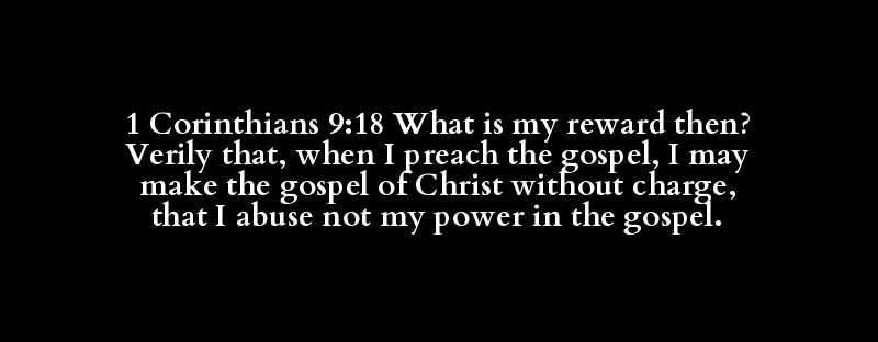 1 Corinthians 9:18 What is my reward then? Verily that, when I preach the gospel, I may make the gospel of Christ without charge, that I abuse not my power in the gospel.
