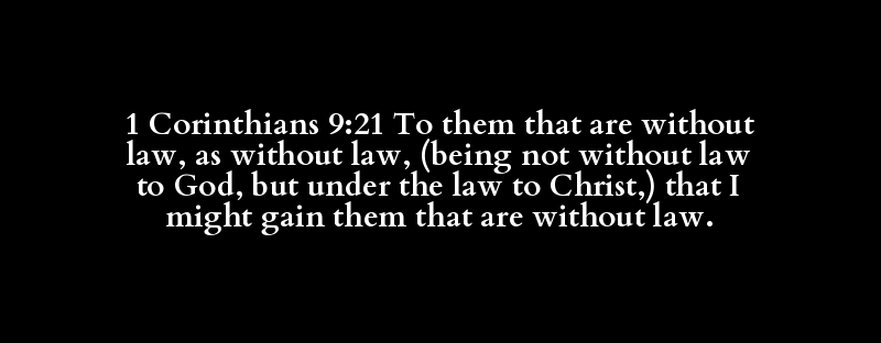 1 Corinthians 9:21 To them that are without law, as without law, (being not without law to God, but under the law to Christ,) that I might gain them that are without law.