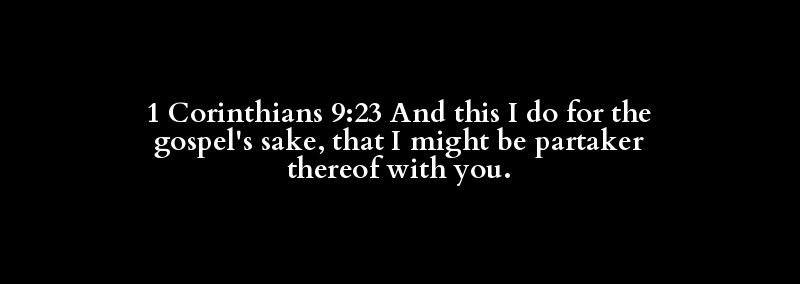 1 Corinthians 9:23 And this I do for the gospel's sake, that I might be partaker thereof with you.