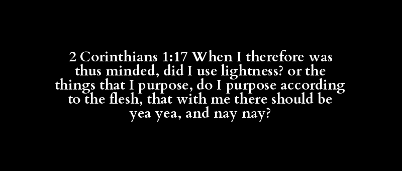 2 Corinthians 1:17 When I therefore was thus minded, did I use lightness? or the things that I purpose, do I purpose according to the flesh, that with me there should be yea yea, and nay nay?