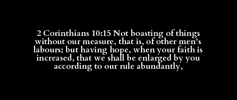 2 Corinthians 10:15 Not boasting of things without our measure, that is, of other men's labours; but having hope, when your faith is increased, that we shall be enlarged by you according to our rule abundantly,