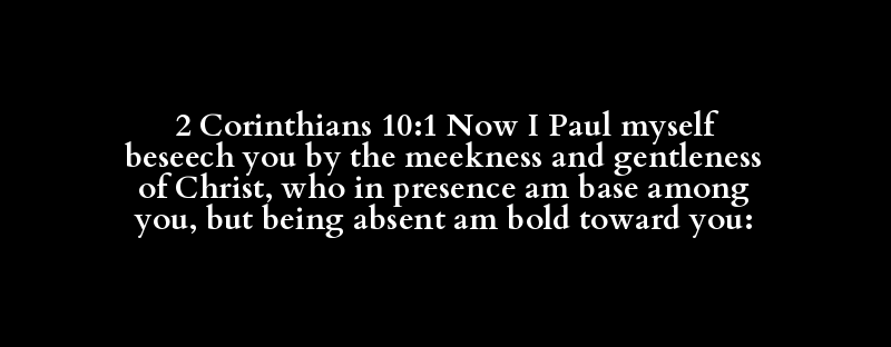 2 Corinthians 10:1 Now I Paul myself beseech you by the meekness and gentleness of Christ, who in presence am base among you, but being absent am bold toward you: