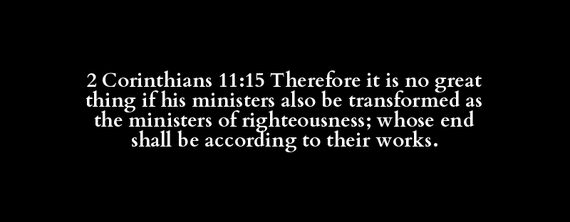 2 Corinthians 11:15 Therefore it is no great thing if his ministers also be transformed as the ministers of righteousness; whose end shall be according to their works.