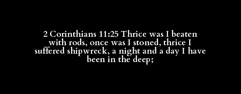 2 Corinthians 11:25 Thrice was I beaten with rods, once was I stoned, thrice I suffered shipwreck, a night and a day I have been in the deep;