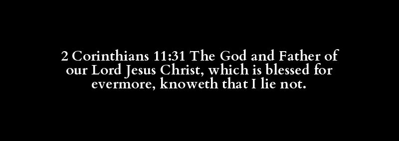 2 Corinthians 11:31 The God and Father of our Lord Jesus Christ, which is blessed for evermore, knoweth that I lie not.