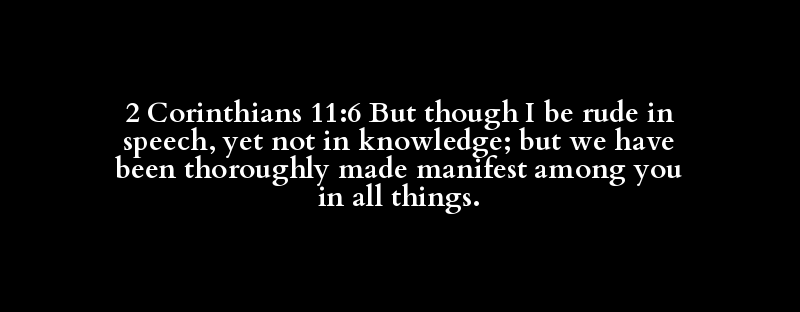 2 Corinthians 11:6 But though I be rude in speech, yet not in knowledge; but we have been thoroughly made manifest among you in all things.