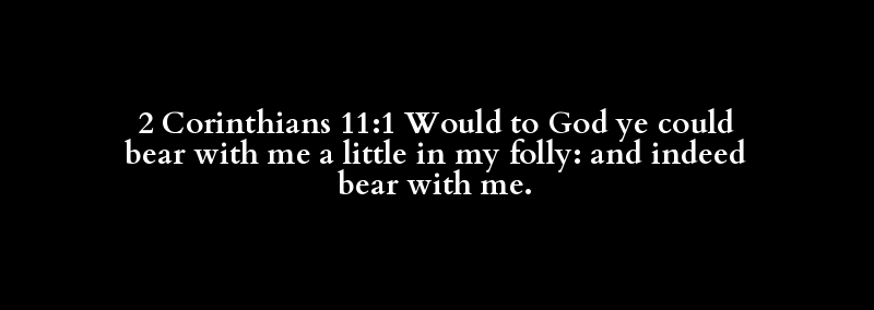 2 Corinthians 11:1 Would to God ye could bear with me a little in my folly: and indeed bear with me.