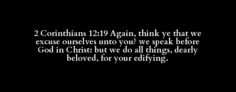 2 Corinthians 12:19 Again, think ye that we excuse ourselves unto you? we speak before God in Christ: but we do all things, dearly beloved, for your edifying.