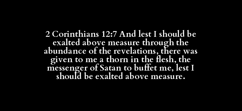2 Corinthians 12:7 And lest I should be exalted above measure through the abundance of the revelations, there was given to me a thorn in the flesh, the messenger of Satan to buffet me, lest I should be exalted above measure.