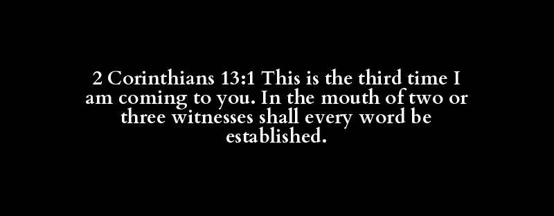 2 Corinthians 13:1 This is the third time I am coming to you. In the mouth of two or three witnesses shall every word be established.