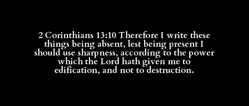 2 Corinthians 13:10 Therefore I write these things being absent, lest being present I should use sharpness, according to the power which the Lord hath given me to edification, and not to destruction.