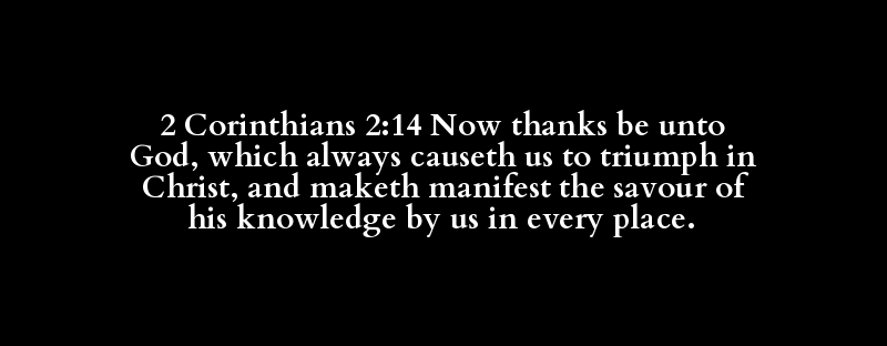 2 Corinthians 2:14 Now thanks be unto God, which always causeth us to triumph in Christ, and maketh manifest the savour of his knowledge by us in every place.