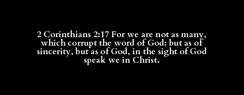 2 Corinthians 2:17 For we are not as many, which corrupt the word of God: but as of sincerity, but as of God, in the sight of God speak we in Christ.
