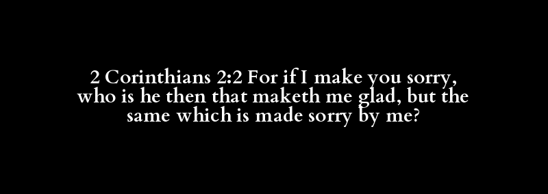 2 Corinthians 2:2 For if I make you sorry, who is he then that maketh me glad, but the same which is made sorry by me?