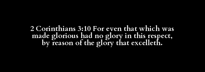 2 Corinthians 3:10 For even that which was made glorious had no glory in this respect, by reason of the glory that excelleth.