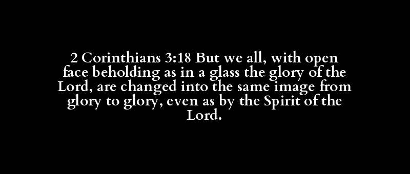 2 Corinthians 3:18 But we all, with open face beholding as in a glass the glory of the Lord, are changed into the same image from glory to glory, even as by the Spirit of the Lord.