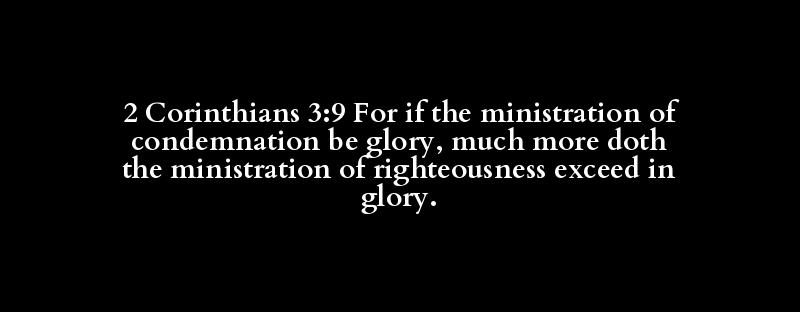 2 Corinthians 3:9 For if the ministration of condemnation be glory, much more doth the ministration of righteousness exceed in glory.